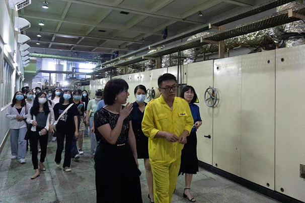 接著,師生一行在制膜車間和分切車間負責人王勝、張冉的帶領下,實地參觀了二號自動化生產(chǎn)車間,現(xiàn)場了解全自動化生產(chǎn)的流程和操作規(guī)范及生產(chǎn)工藝的相關技術。技術先進、管理嚴謹?shù)纳a(chǎn)現(xiàn)場極大激發(fā)了同學們的學習積極性,大家都好奇地觀察車間內(nèi)的情況,主動詢問詳情。同學們紛紛表示從中學到了很多新的知識,開闊了視野,對自己今后的學習和未來的工作都有很大幫助。