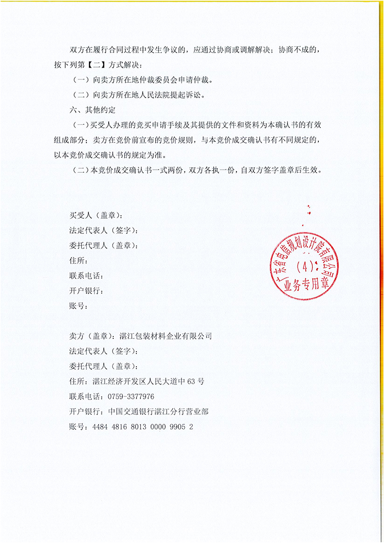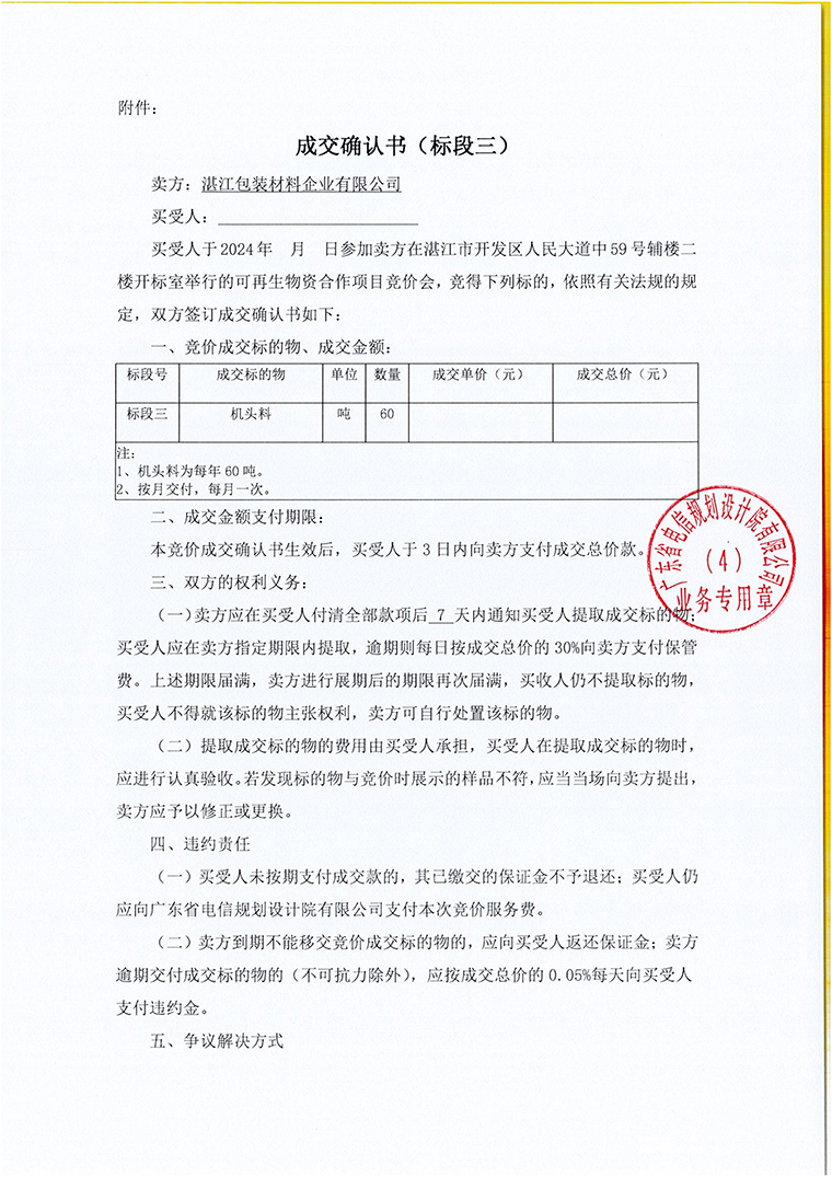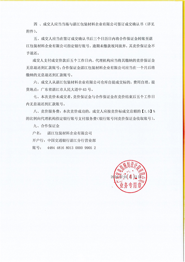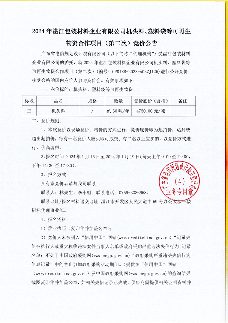 2024年湛江包裝材料企業(yè)有限公司機頭料、塑料袋等可再生物資合作項目(第二次)競價公告